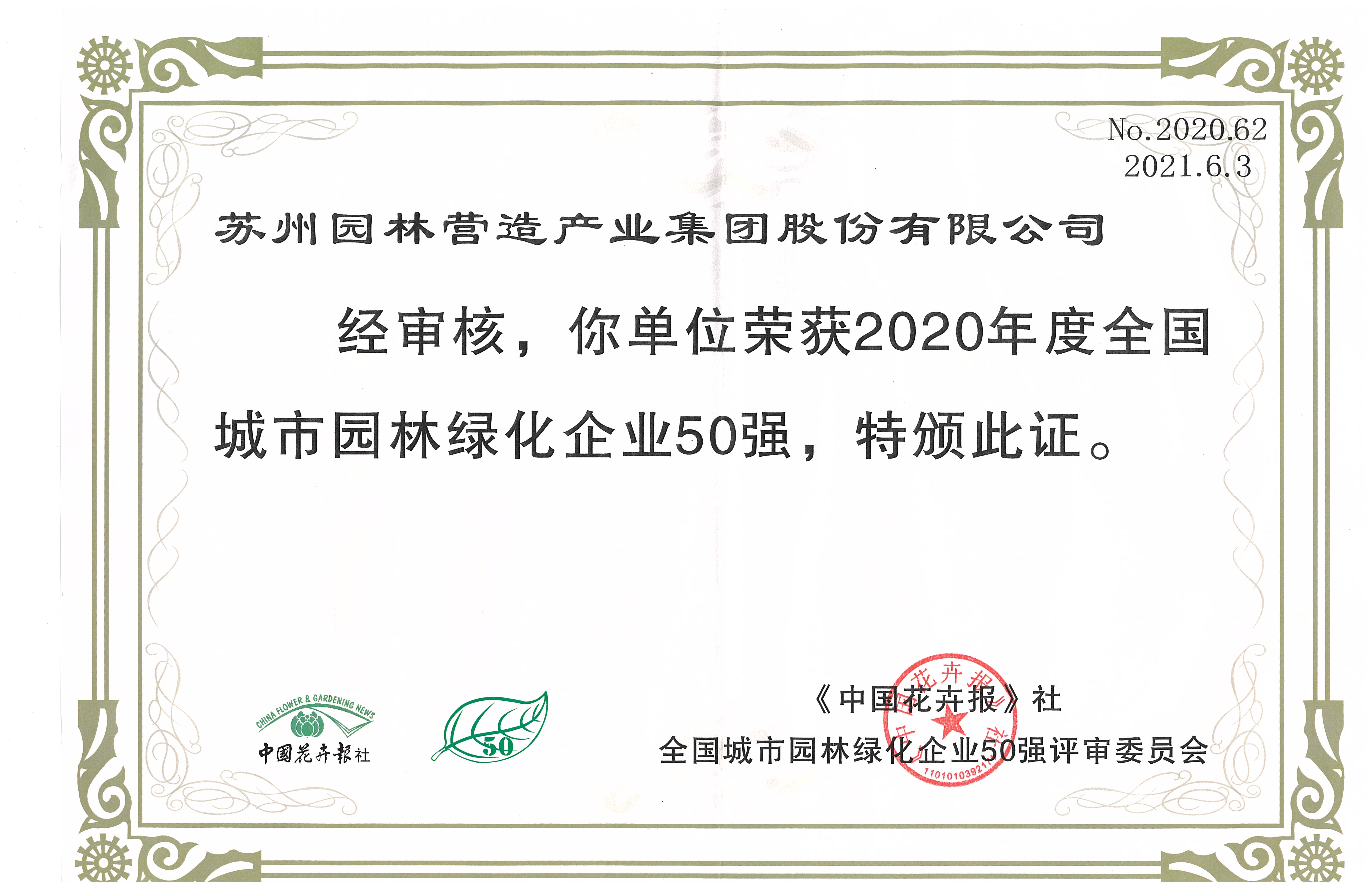 喜報 | 蘇州園林產業集團榮獲“2020年度全國城市園林綠化企業50強”